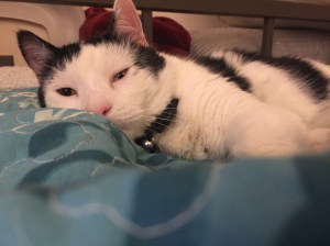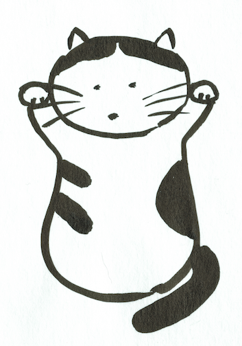 右手(右前足、ですね)挙げ。左手挙げ。さらに手を伸ばした猫。